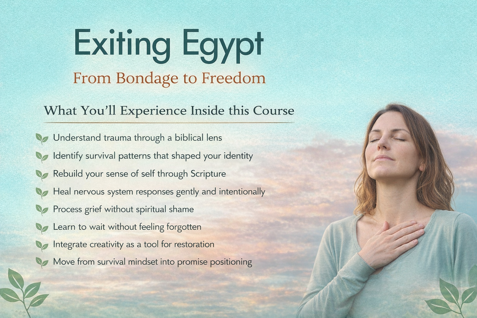 Exiting Egypt was not written from theory. It was born from lived experience — navigating trauma, illness, emotional refinement, identity shifts, and deep seasons of faith. I learned something profound: Leaving a painful season does not automatically heal the internal impact of it. Healing requires: • Biblical truth • Safe reflection • Intentional processing • Creative integration • And space This course is that space.